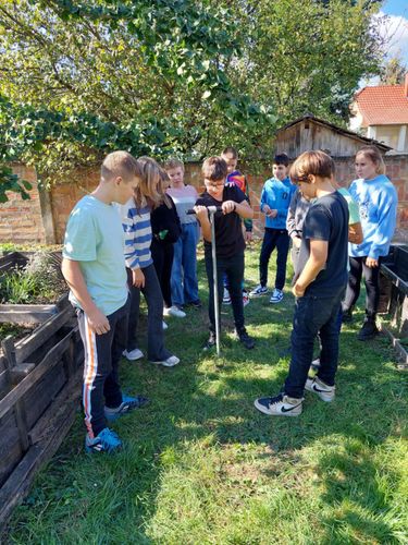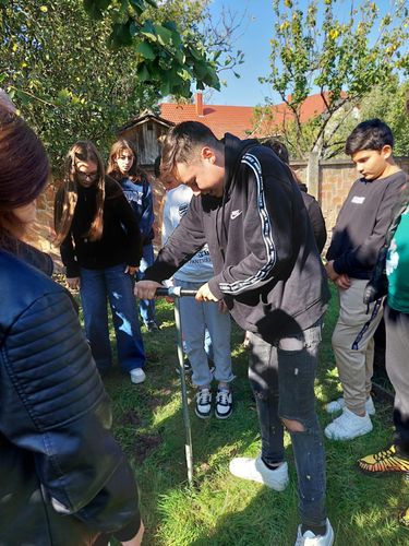 Az 5-6. évfolyam talajvizsgálatot végzett az iskola udvarán, Dr. Kalocsai Renátó vezetésével.