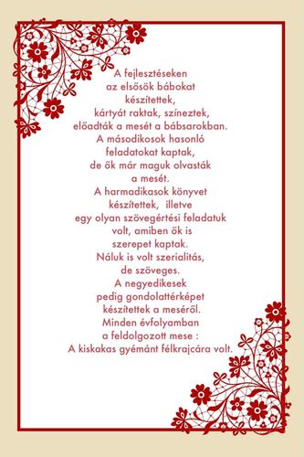 Minden évfolyamban a feldolgozott mese : A kiskakas gyémánt félkrajcára volt.