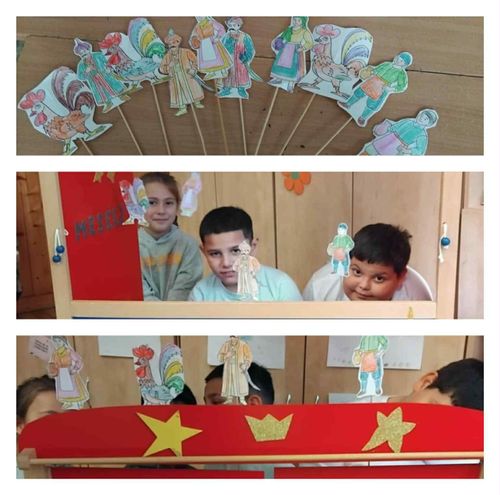A fejlesztéseken az elsősök bábokat készítettek, szerialitás kártyát raktak, színeztek, előadták a mesét a bábsarokban.