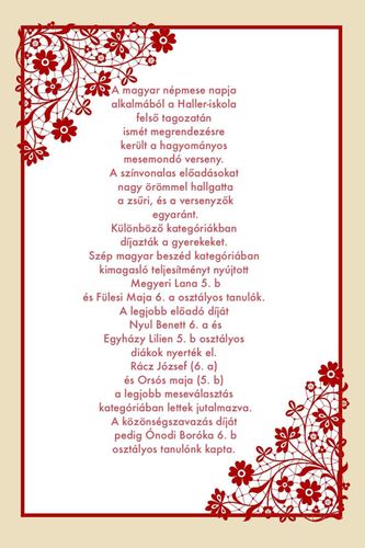 A magyar népmese napja alkalmából a Haller-iskola felső tagozatán ismét megrendezésre került a hagyományos mesemondó verseny.