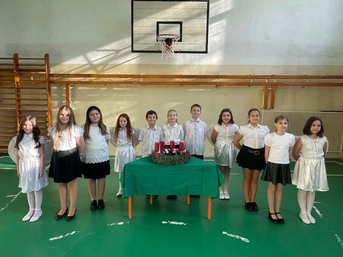 Az első gyertyát az 5. évfolyamos tanulók gyújtották meg, a műsort Molnárné Nagy Zsuzsanna készítette.
